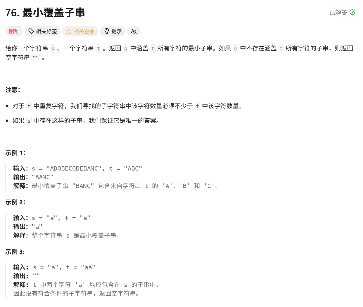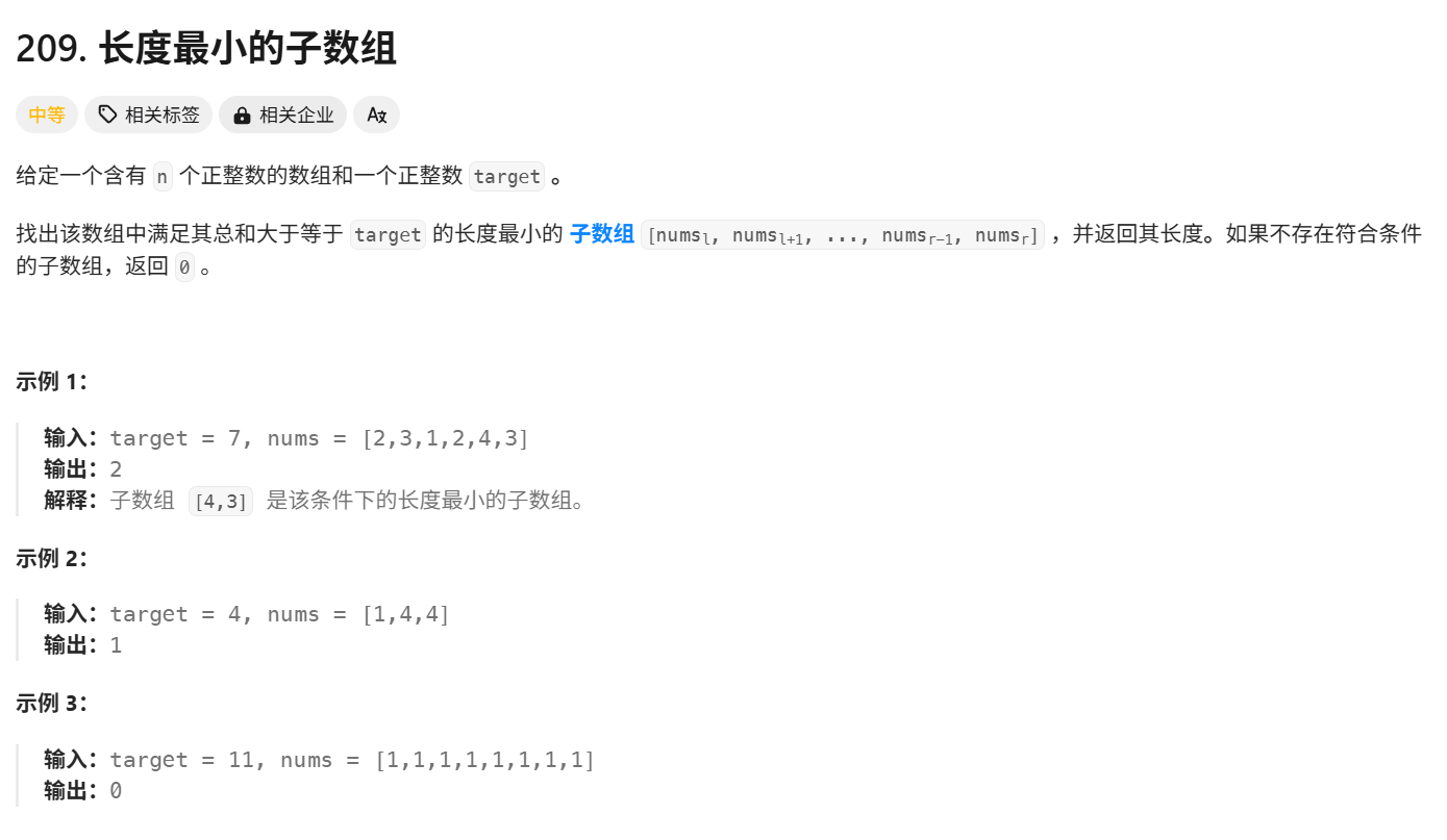 209. 长度最小的连续子数组、76.最小覆盖子串 - 套路:维护一个左指针l、右指针r,通过不断扩张和收缩来满足题目约束
