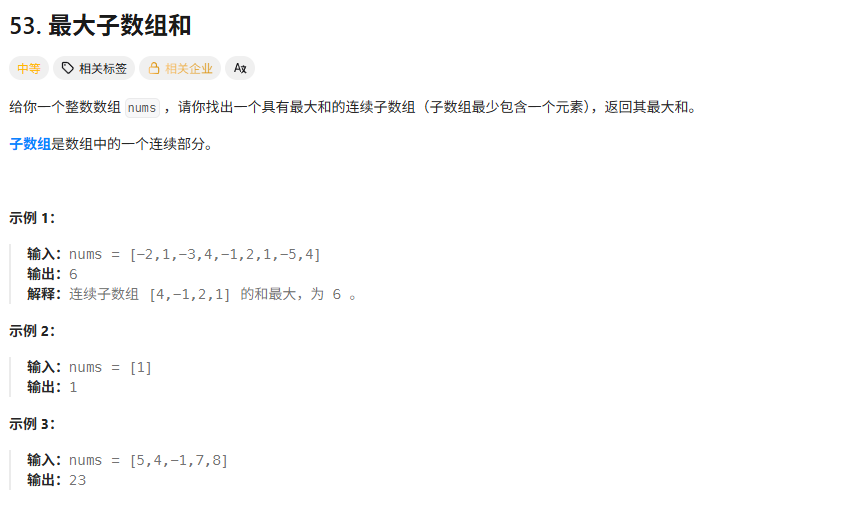 53. 最大子数组和、238. 除自身以外数组的乘积