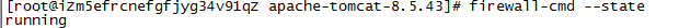 输入命令 " firewall-cmd --state " 如果出现如图所示的这种情况说明正在运行,如果没有正在运行需要执行命令" systemctl start firewalld "开启防火墙服务