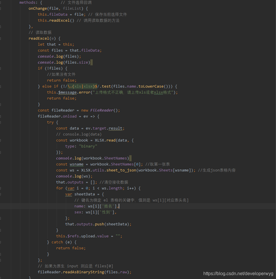 2.在当前页面.vue文件中引入: import XLSX from 'xlsx'