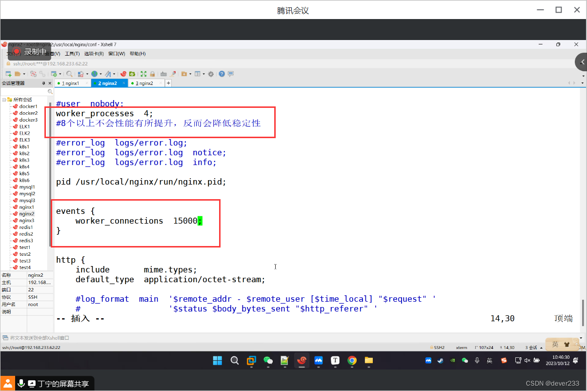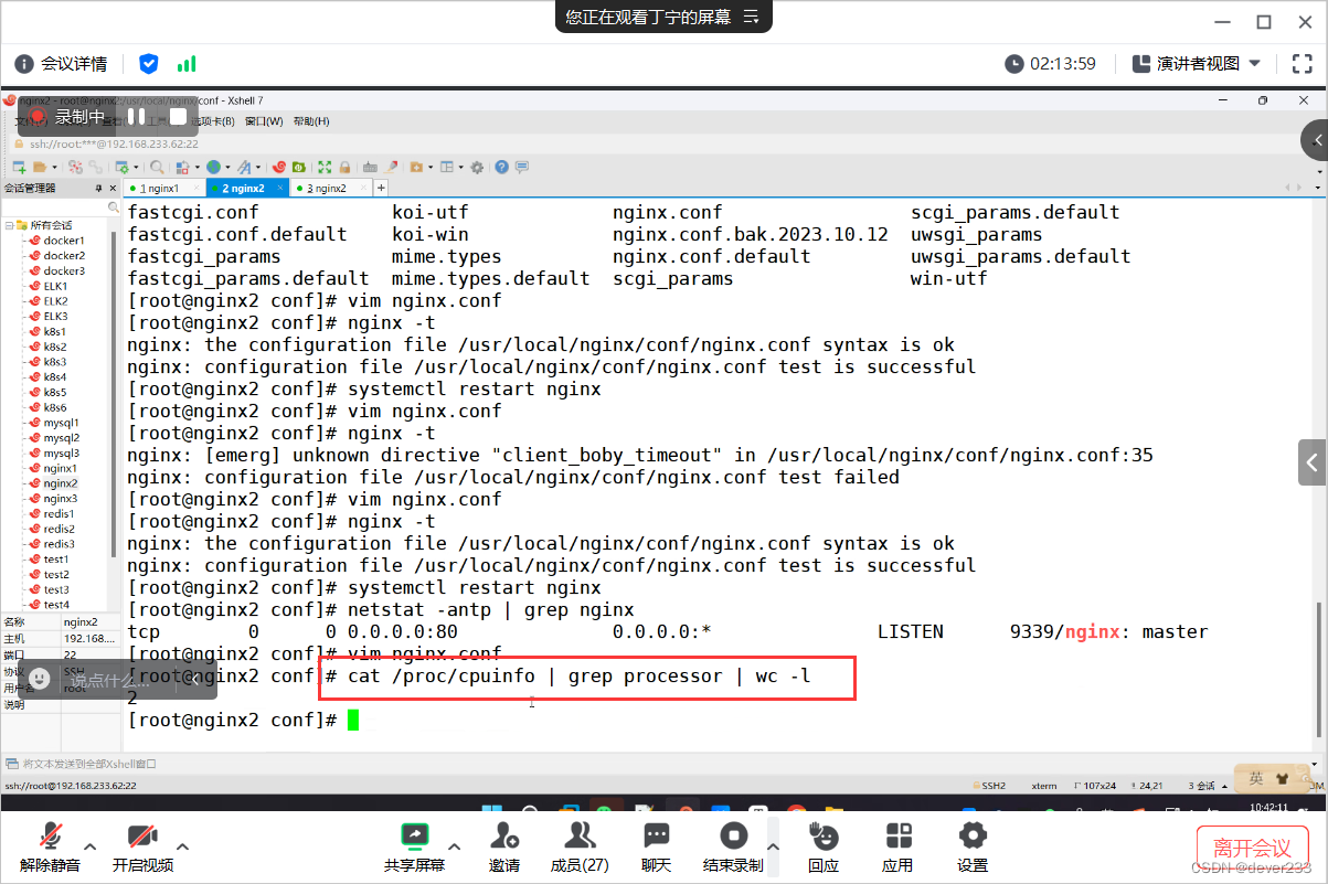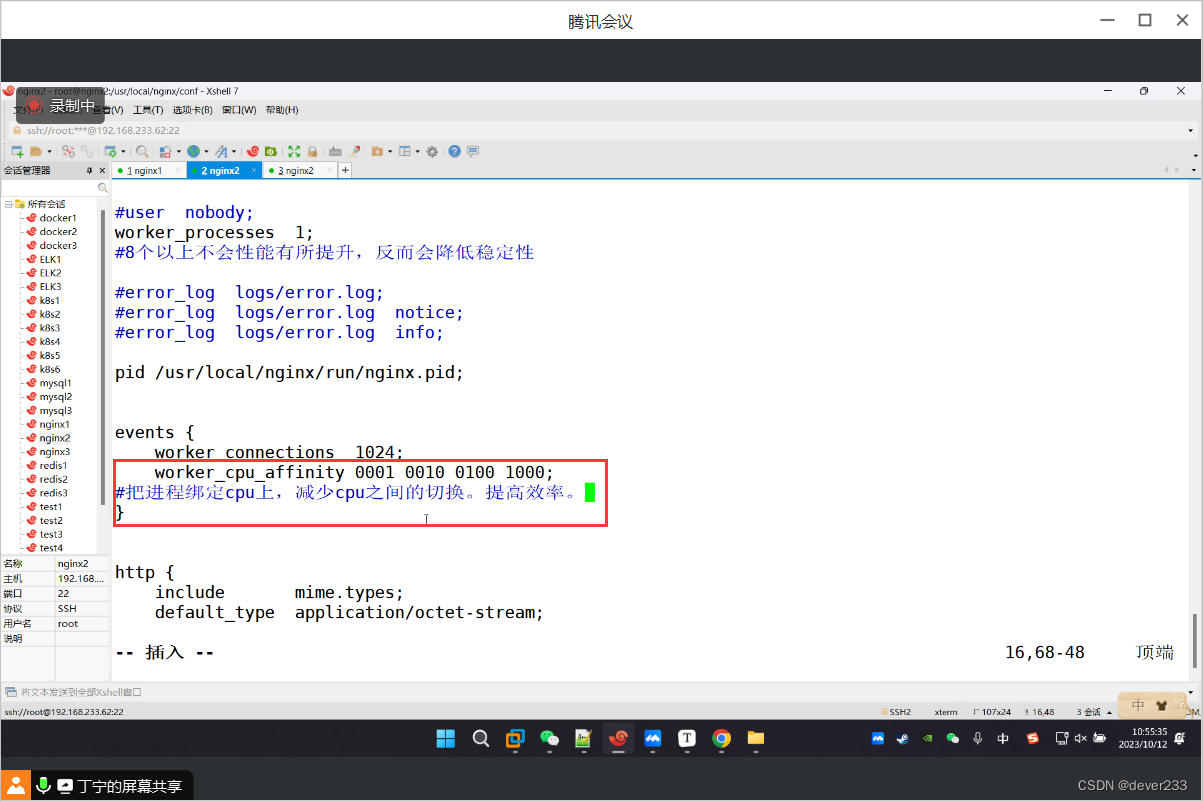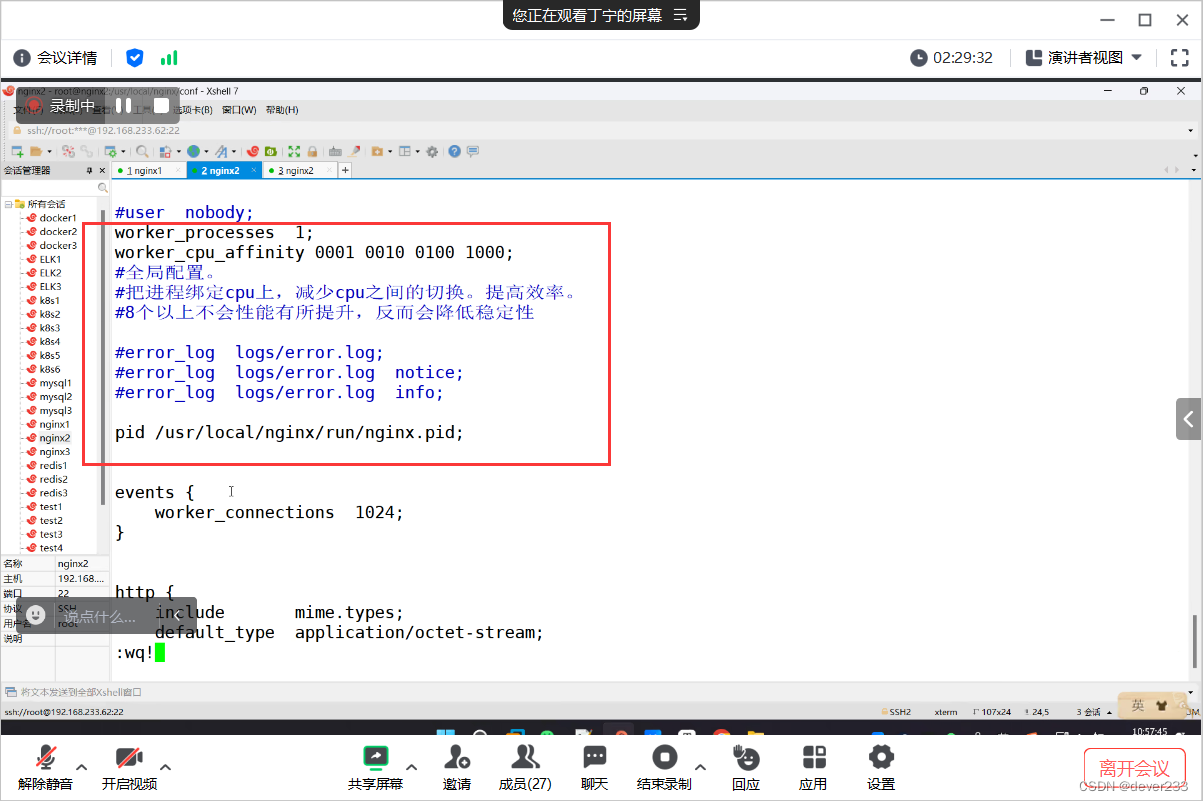 - nginx并发设置 在高并发场景 需要nginx启动更多进程来保证快速响应 根据cpu的核心数可以调整nginx的工作进程