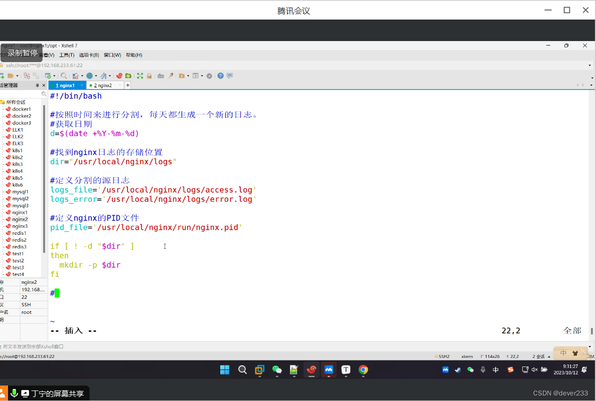 - nginx日志分割:nginx没有自带日志分割功能 通过脚本实现日志分割