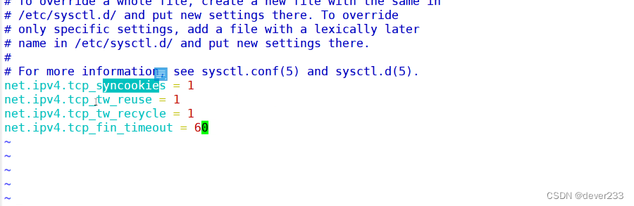 - 表示开SYN cookies 当出现syn等待队列溢出时 启用cookies处理syn队列 默认是0 1表示开启