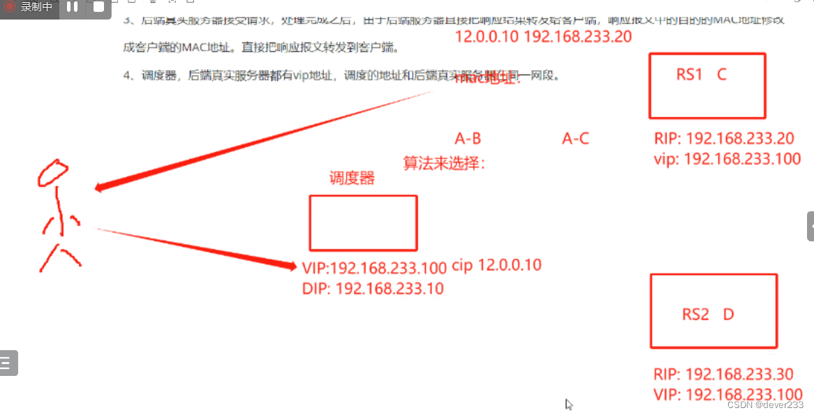 - LVS调度器接受请求后 根据算法选择一台后端真实服务器 请求转发到后端RS 请求的报文的目的mac地址 修改成后端真实服务器的Mac地址 转发