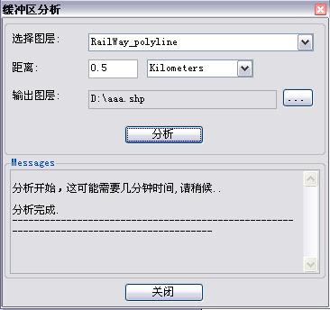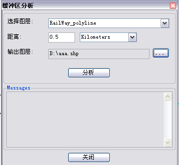 为缓冲区分析的输入对话框。其中最主要的是“分析”按钮的处理事件。源代码及分析如下: