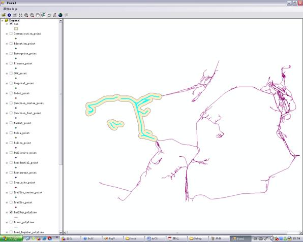 9 点击工具条上的“缓冲区分析按钮”,弹出缓冲区分析对话框