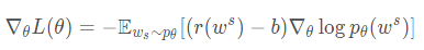 SCST的思想就是用当前模型在测试阶段生成的词的reward作为baseline,梯度就变成了: