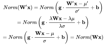 权重伸缩不变性(weight scale invariance)指的是,当权重 按照常量