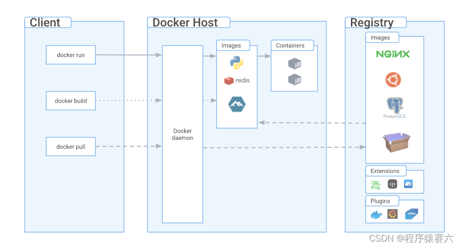 Docker client(docker)即docker客户端,是用户向Docker发送操作请求的工具。当我们发送docker run命令时,Docker client会调用相应的Docker API向Docker daemon发送请求,Docker daemon收到请求后执行相应的run命令。