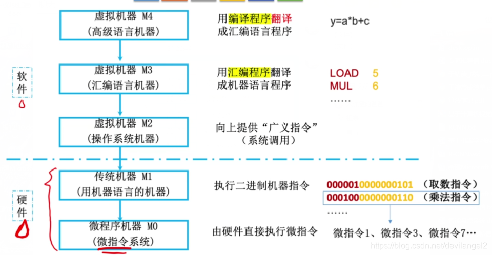 M0:CPU只能执行机器语言即二进制指令,微程序机器M0(微指令系统)可以看成传统机器语言的一个分解,来解释M1的指令