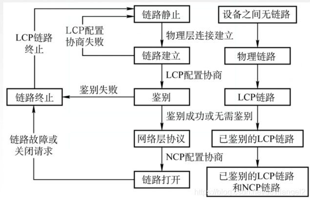 LCP是物理连接,NCP是逻辑连接,只有都链接了才算入网成功