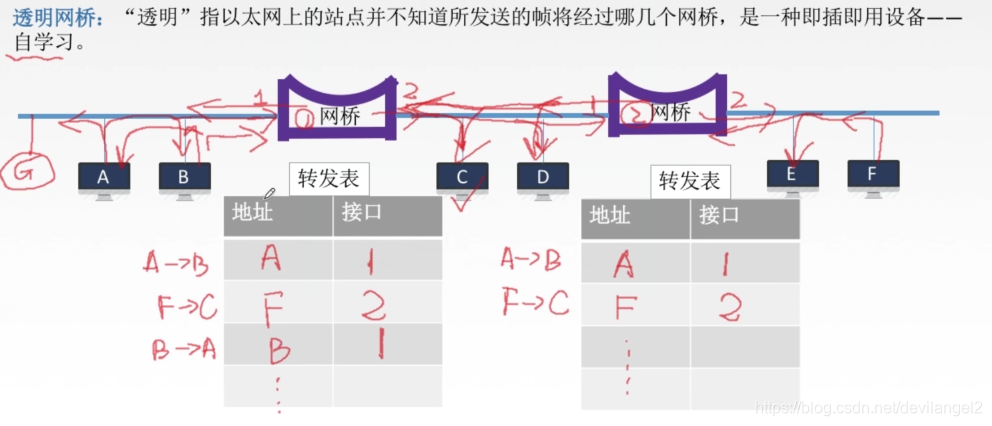网桥根据MAC帧的目的地址对帧进行转发和过滤。当网桥收到一个帧时,并不向所有接口转发此帧,而是 先检查此帧的目的MAC地址,然后再确定将该帧转发到哪一一个接口, 或者是把它丢弃(即过滤)。