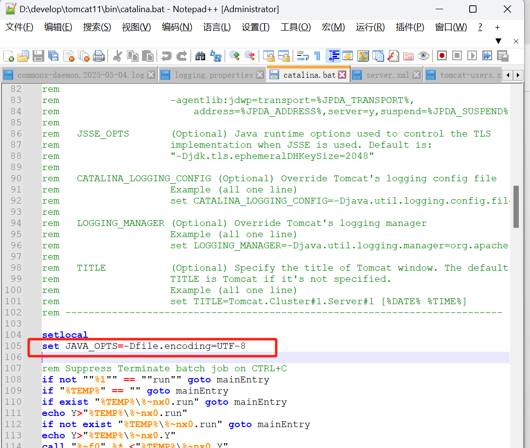 set JAVA_OPTS=-Dfile.encoding=UTF-8