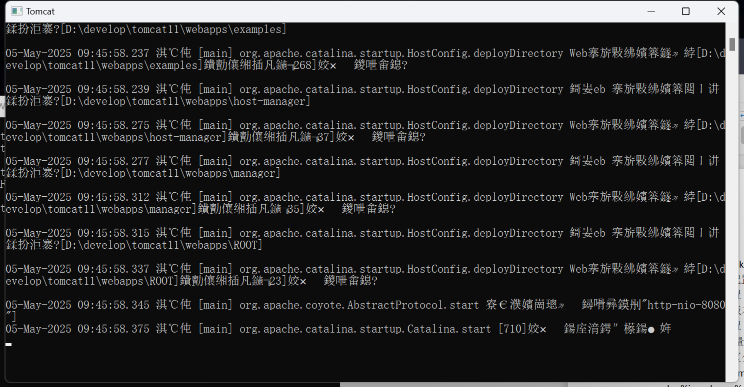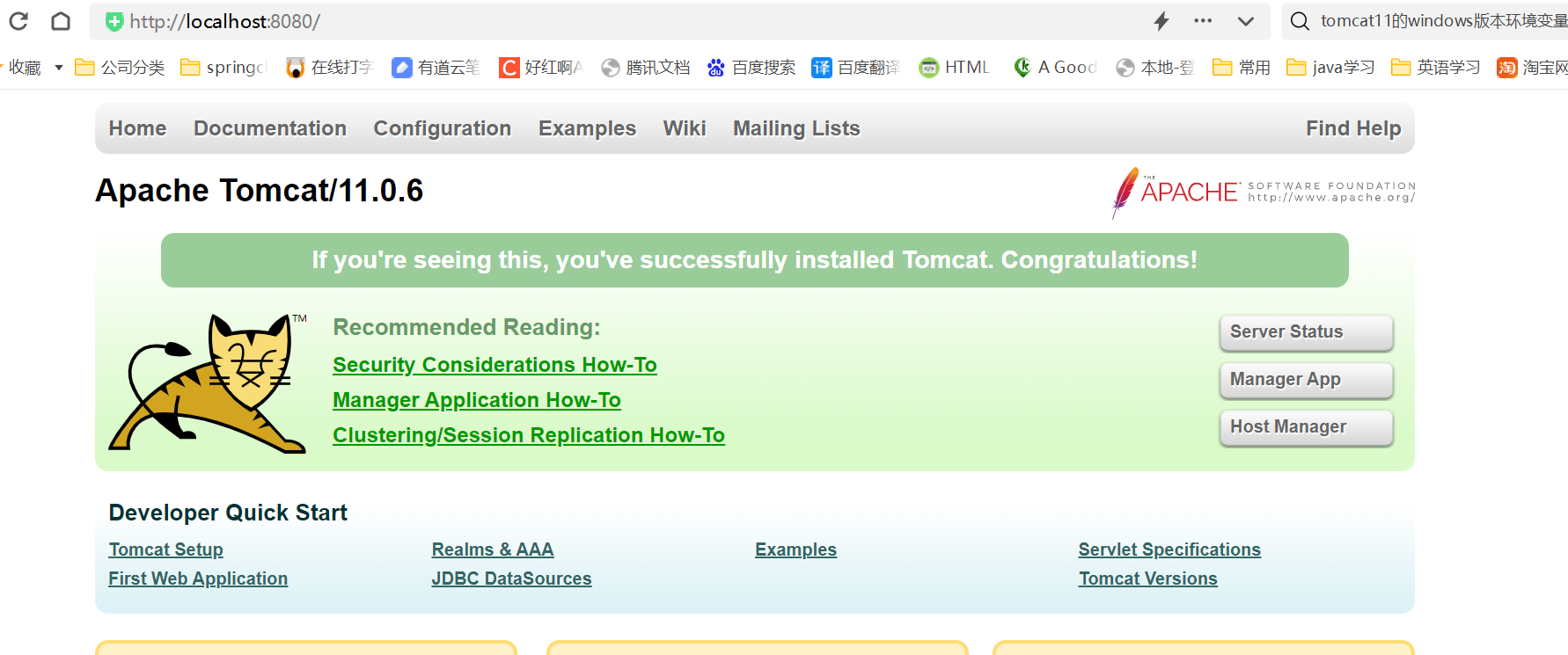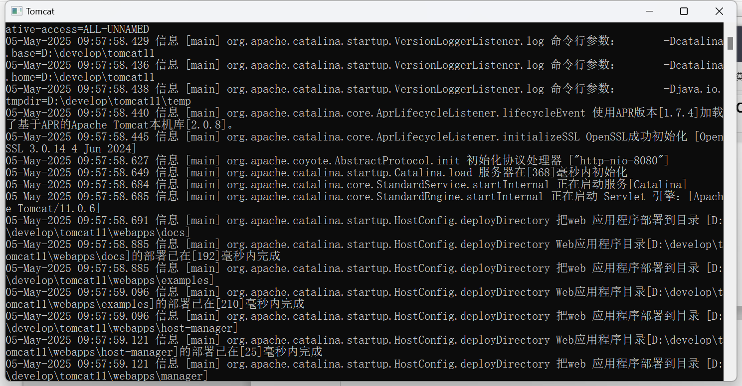 点击tomcat11根目录中的bin目录中运行startup.bat