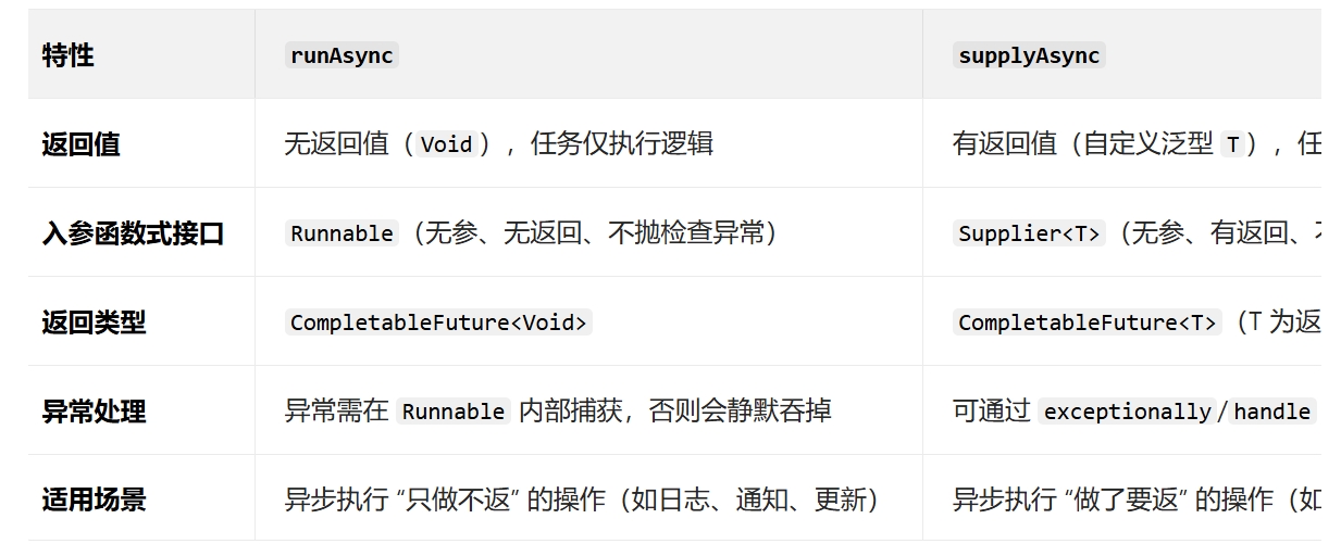 CompletableFuture.runAsync(Runnable) - 有返回值: