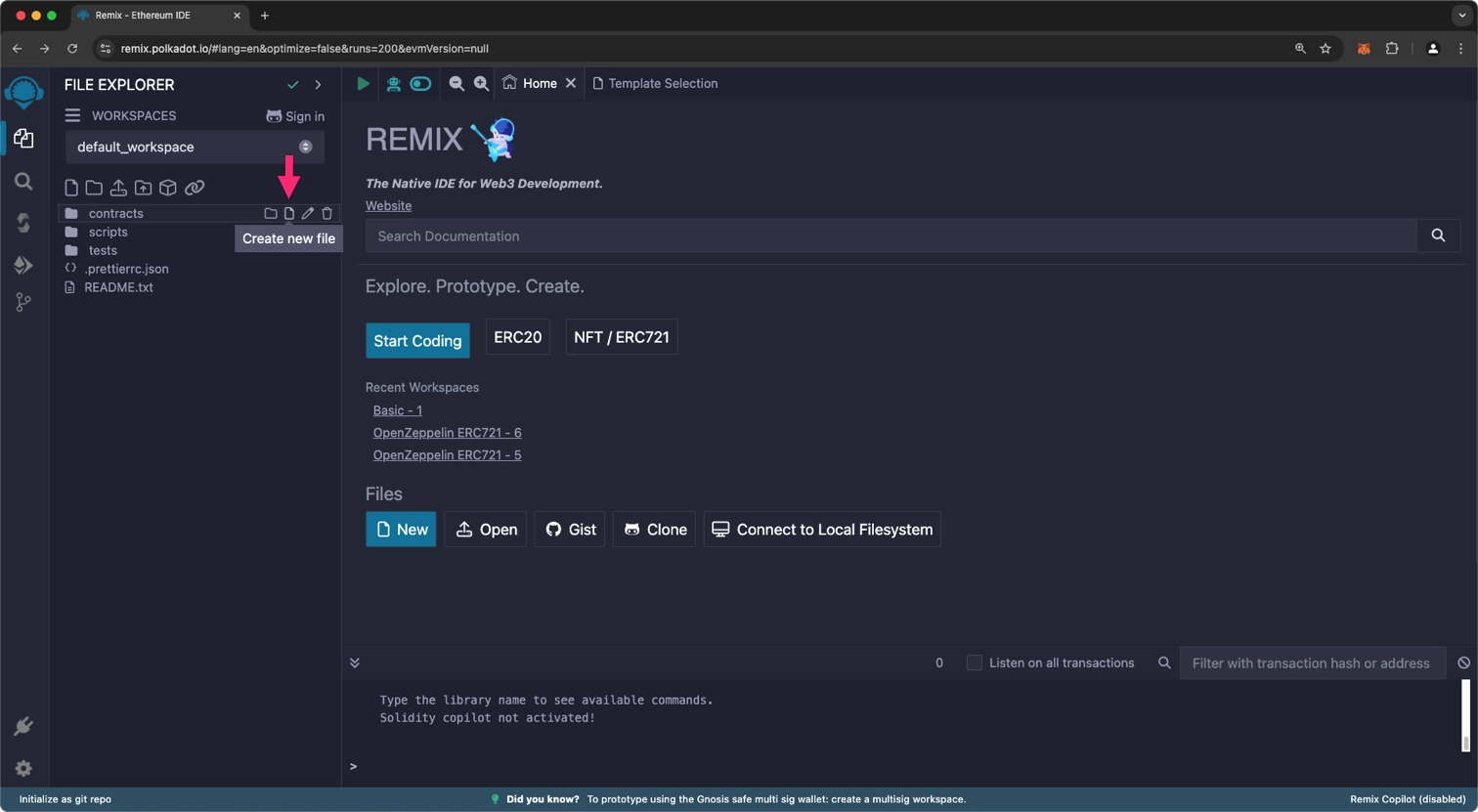 打开 Polkadot Remix IDE。链接:https://remix.polkadot.io/