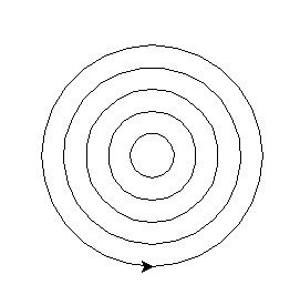 import turtle for i in range(5): turtle.up() turtle.goto(0,-20*(i+1)) turtle.down() turtle.circle(20*(i+1)) turtle.done()