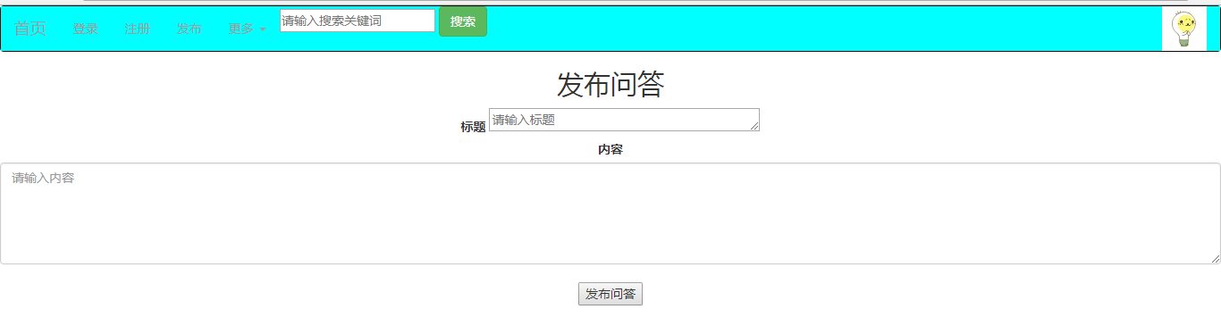 {% extends 'base.html' %} {% block title %} 发布问答 {% endblock %} {% block head %} <link href="{{ url_for('static',filename='label.css') }}" rel="stylesheet" type="text/css"> {% endblock %} {% block main %} <div class="box"> <h2 align="center">发布问答</h2> <div class="input_box" align="center"> <label for="question">标题</label> <textarea id="question" cols="40" rows="1" placeholder="请输入标题"></textarea> </div> <div class="input_box" align="center"> <label for="questionDetail" >内容</label> <textarea class="form-control" id="questionDetail" cols="50" rows="5" placeholder="请输入内容"></textarea> </div> <br> <div class="input_box" align="center"> <button onclick="fnQuestion">发布问答</button> </div> </div> {% endblock %}