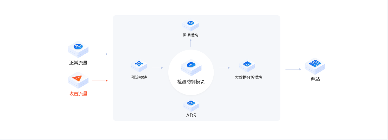 安全加速SCDN基于自研ADS系统精准区分正常流量和攻击流量,建设多个分布式流量清洗中心单点防御规模可达 到T级,全力清洗SYN Flood、ACK Flood、FIN/RST Flood、 TCP Flood、UDP Flood、 ICMP Flood等网络层和应用层DDoS攻击。
