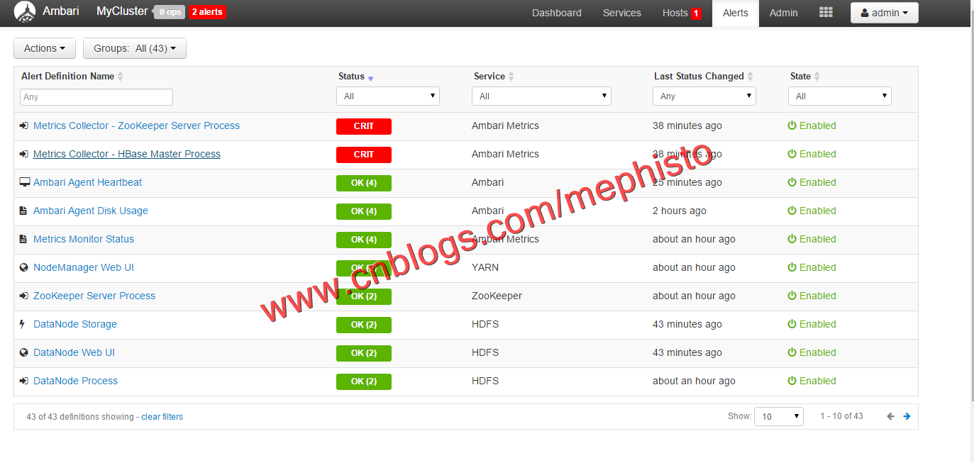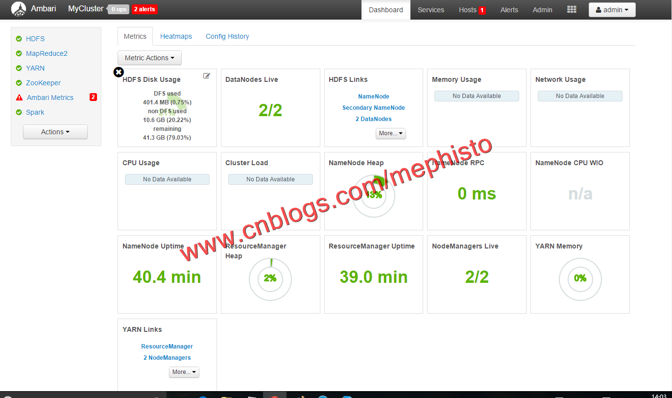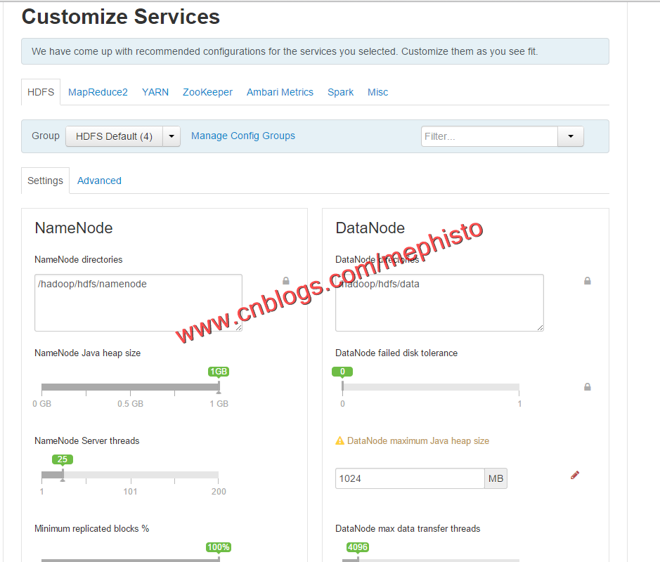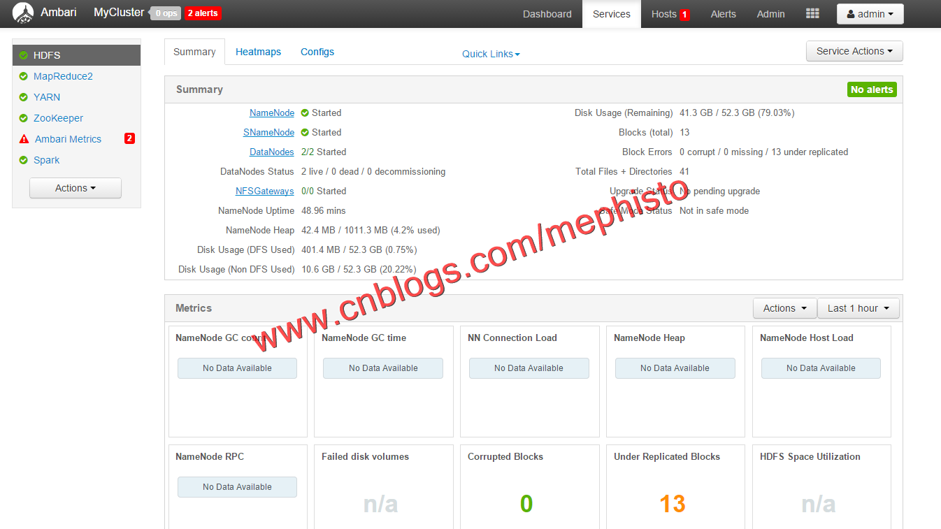 在这里,可以看到例如HDFS,Zookeeper,SparK这些服务的情况。