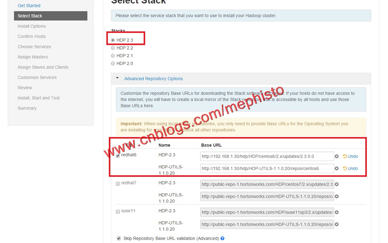 四:选择HDP版本和源