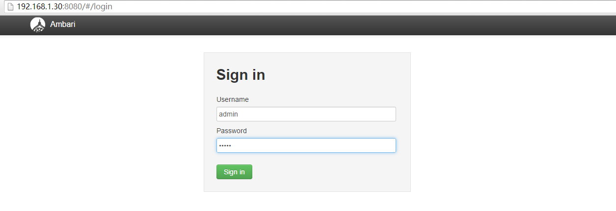 使用我们设置的Ambari服务器登陆,还记得么,在H30上面。