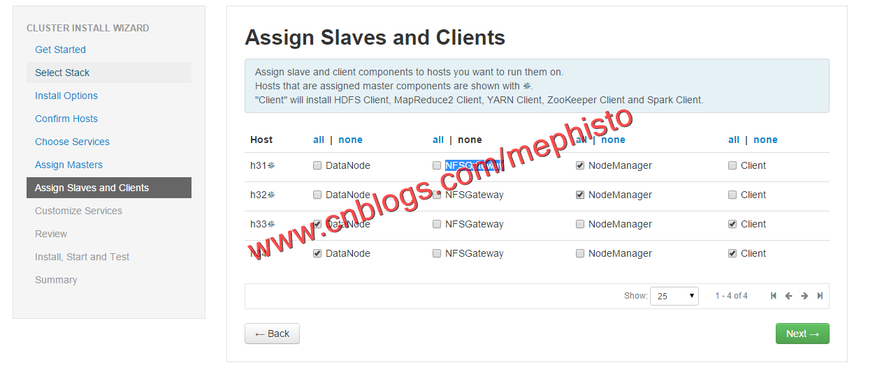 选择H31,H32作为NodeManager,H33,H34作为DataNode