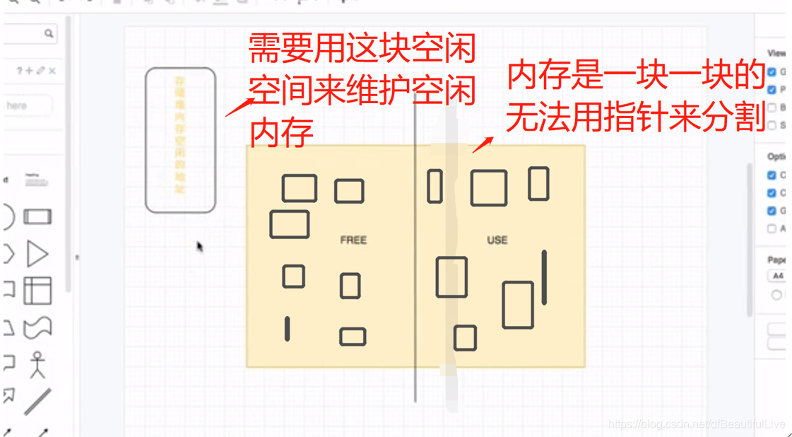 把堆内存分为两个空间,一个空闲内存,一个使用内存,中间的指针就是分界线,其实分配的内存就是指针移动的过程,当创建对象时,肯定会占用内存空间,那么使用内存增大,指针就会往左移动,空闲内存就会缩小,指针就会向左移动,这种方式就是指针碰撞