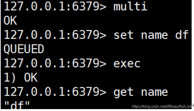 MULTI:中文是多的意思,没有明白为什么用这个单词来表示开始事务,MULTI相当于MySQL的begin
