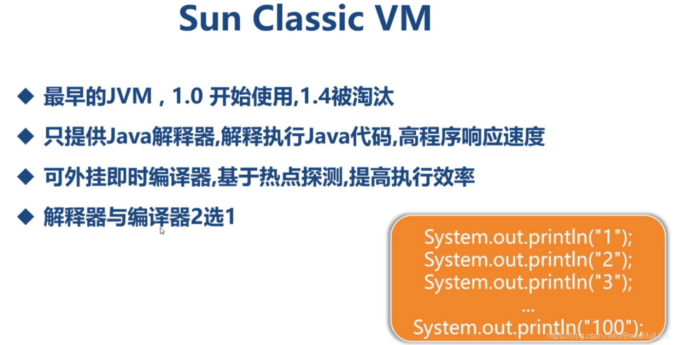 - 那同理就会出现编译器,对于经常出现的热点的指令进行解析缓存,那么后续再次出现这个指令时可以不解析直接取缓存里的指令即可实现结果。但是最早的jvm是没有内置的,需要自己额外安装编译器。