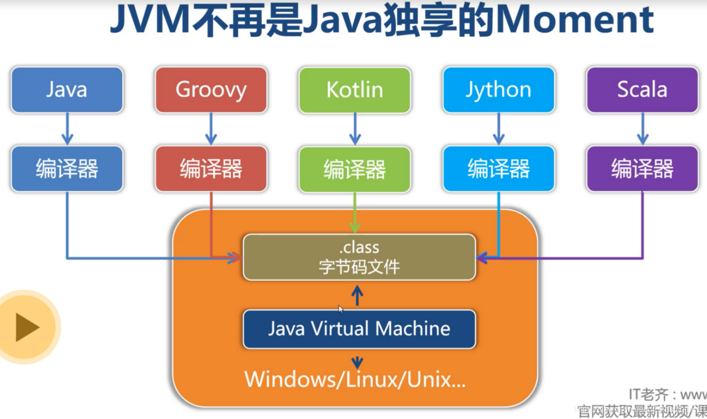 任何一门语言都可以根据jvm规则编译成.class字节码文件来跨平台使用虚拟机