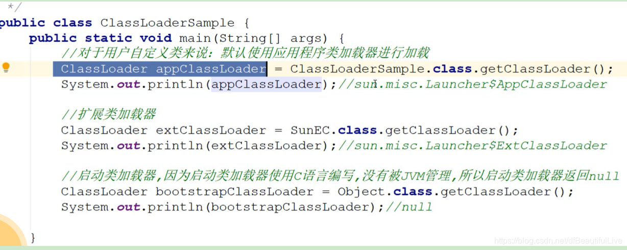 1.java语言编写,由sun.misc.Launcher$AppClassLoader实现