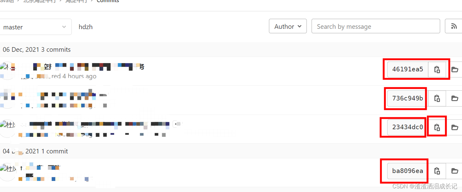 commit id 获取方式可以git log 也可在界面获取,标红的地方就是commit id,然后点击复制就可以 了