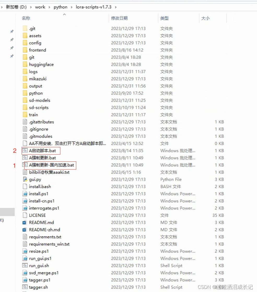 首先是去秋叶大佬那里下载一键训练包,这样我们的训练就相当简单,解压包以后先更新,后启动。