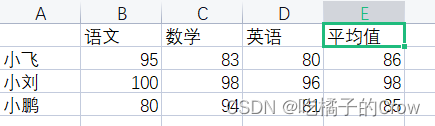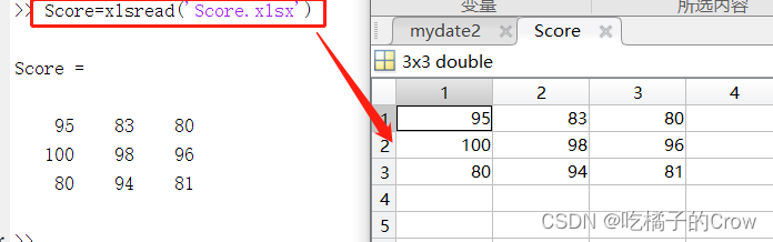 xlswrite('Score.xlsx',{'平均值'},1,'E1')%写列题目