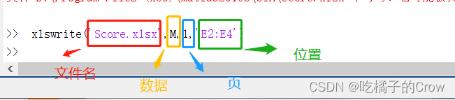 xlswrite('Score.xlsx',M,1,'E2:E4')