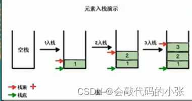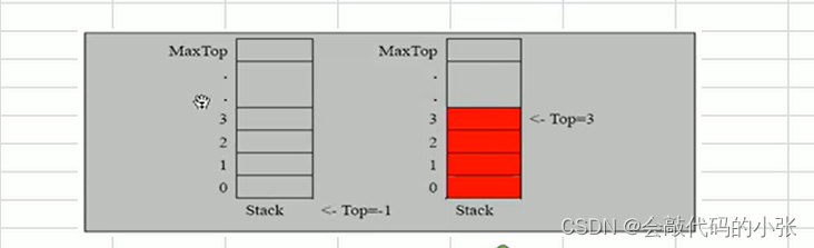 2.定义一个top表示栈顶,初始化为-1