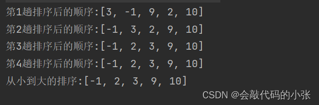 System.out.println("第" + (i + 1) + "趟排序后的顺序:" + Arrays.toString(array));