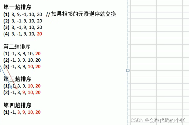 我们举一个具体的案例来说明冒泡法。我们将五个无序的数:3,9,-1,10,20使用冒泡排序法将其排成一个从小到大的有序数列。