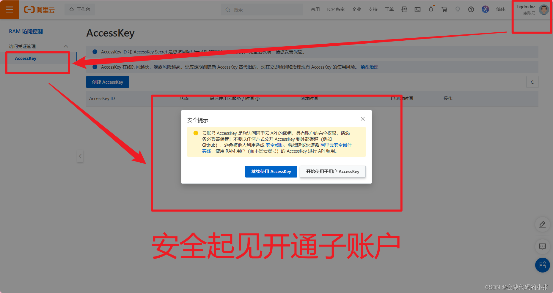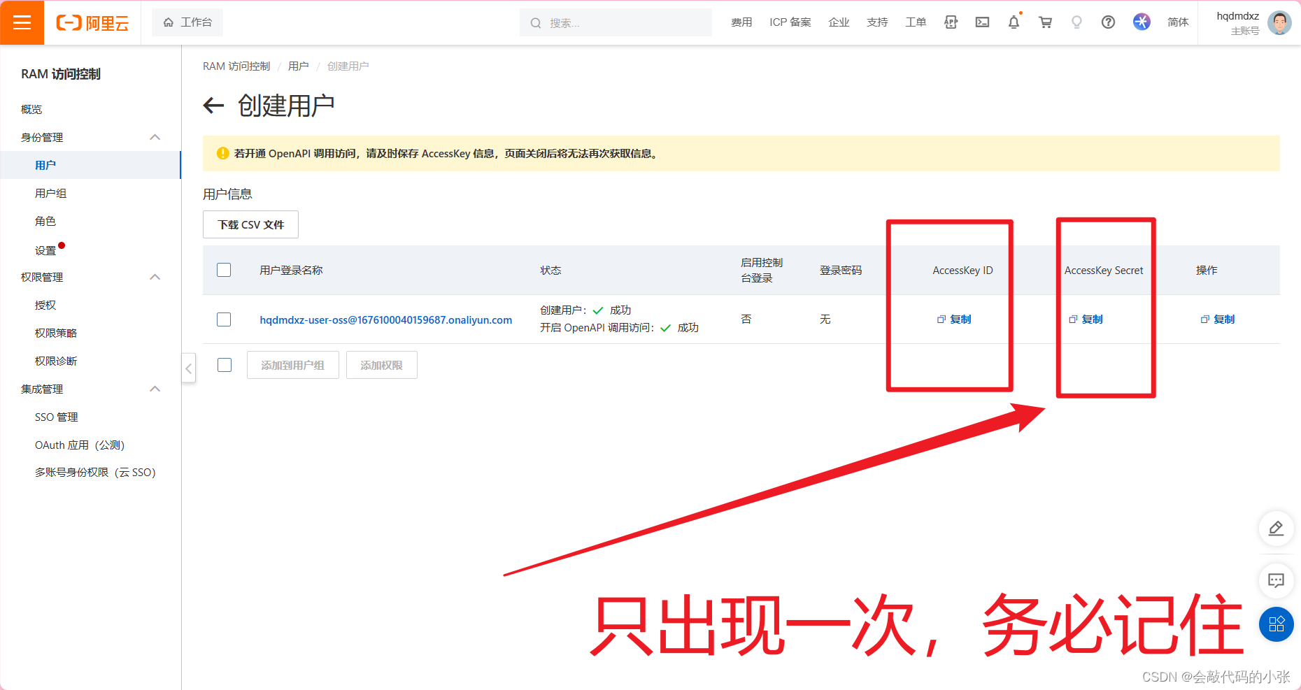 - 5.获取AccessKey ID ,AccessKey Secret;只出现一次,务必粘贴复制
