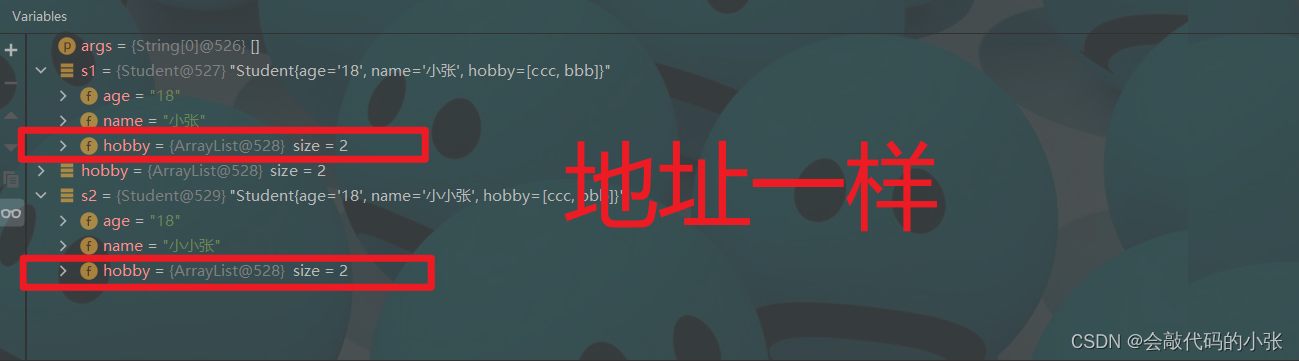 - 如果原型对象的成员变量是引用数据类型,则将引用对象的地址复制一份给克隆对象,也就是说原型对象和克隆对象的成员变量指向相同的内存地址