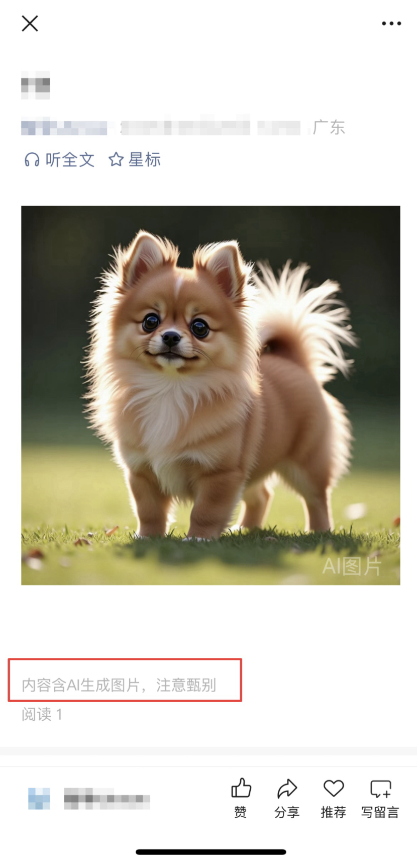平台也会对可能是AI生成合成的内容进行相应提示,以便用户清晰辨识。为避免发布的内容在传播过程中引起混淆或误认,用户发布的内容为AI生成合成的,发布时需主动进行声明。