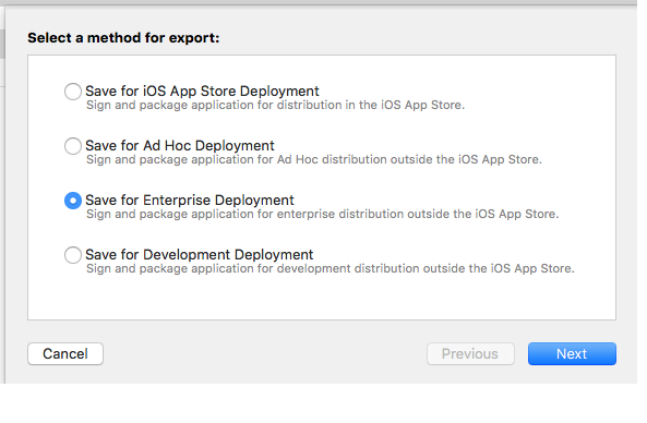 要打包成任意设备都可以安装的ios安装包(ipa),首先需要一个企业开发者账号($299/年),确认满足以后执行以下步骤: