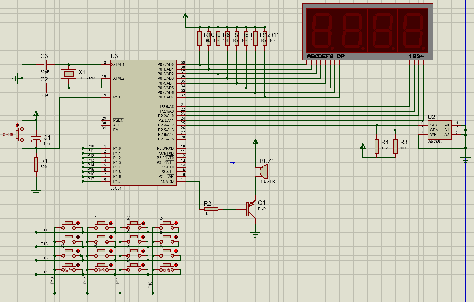 保存密码:新密码自动保存到AT24C02 EEPROM