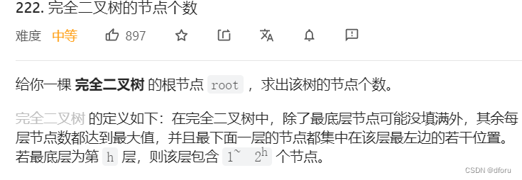 输入:节点;输出:以该节点为根节点的满二叉树的节点数量