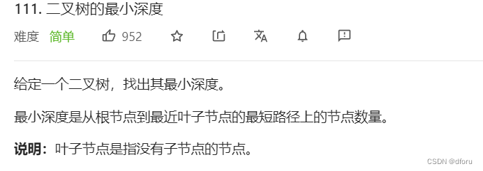 逐层遍历,当出现叶节点时停止遍历,返回此时的深度
