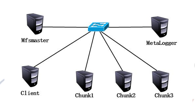 本案例使用六台服务器模拟搭建MFS文件系统,
