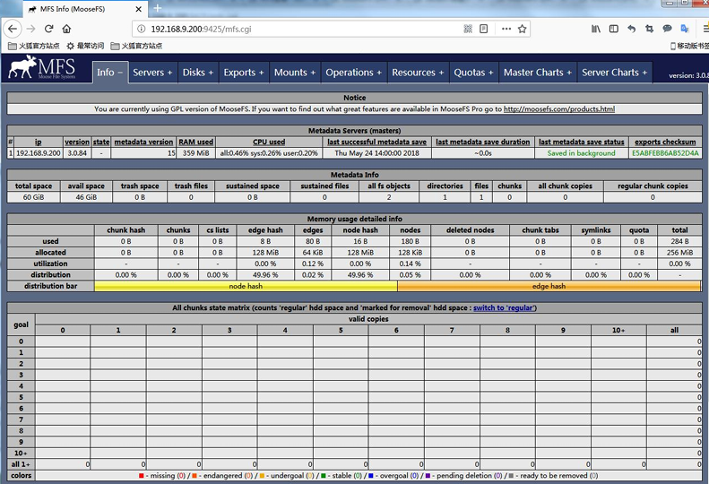 - Disks 部分: 显示 Chunk Server 的硬盘信息。