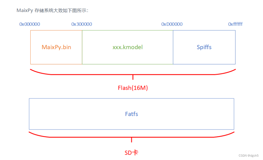 官网文档给出的存储系统,可以看到0x000000到0x300000是存储bin文件,也就是刚才下载的固件包的,0x300000到0xD000000是存储训练的模型的地方。