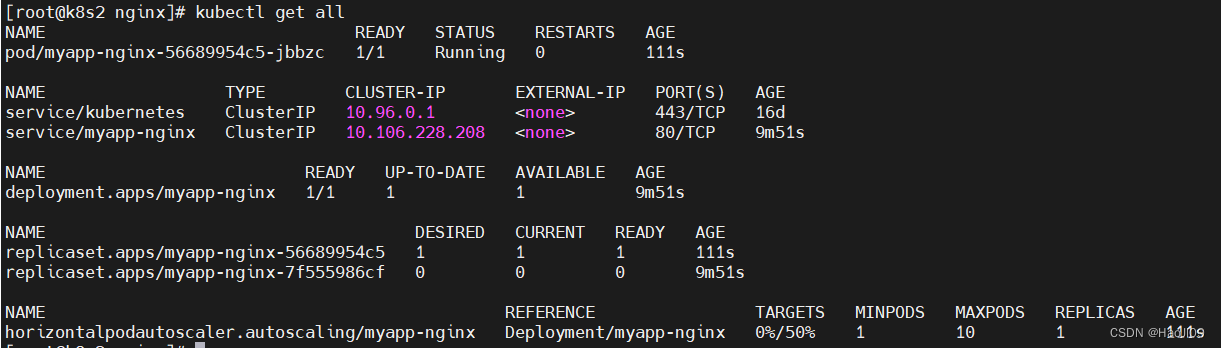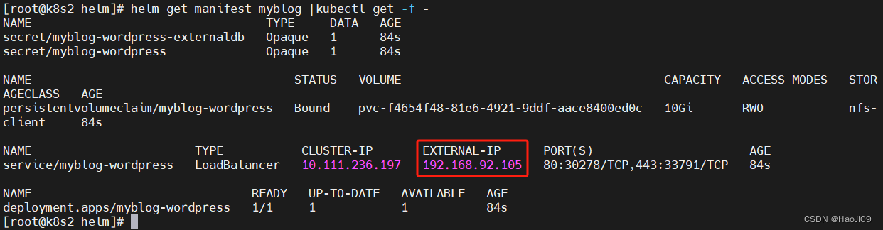 [root@k8s2 helm]# helm get manifest myblog |kubectl get -f -